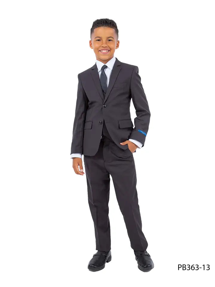 Boys Perry Ellis 5 Piece Slim Fit Suit. Includes Jacket, Pants, Vest, Tie and Collar Shirt