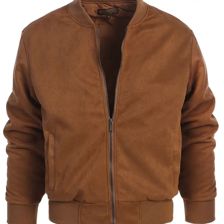 Full-length Zip Up Suede Jacket with Traditional Interior Lining 4 Multi Functional Pockets: 2 Exterior Side Pockets and 2 Secure Interior Pockets Ribbed Neckline, Cuffs and Hem. A relax fit through body jacket. A Versatile stylish sports bomber jacket for any occasion.