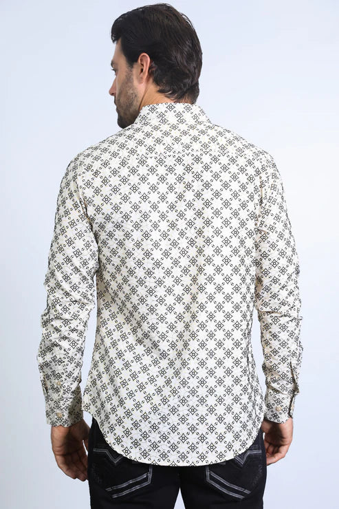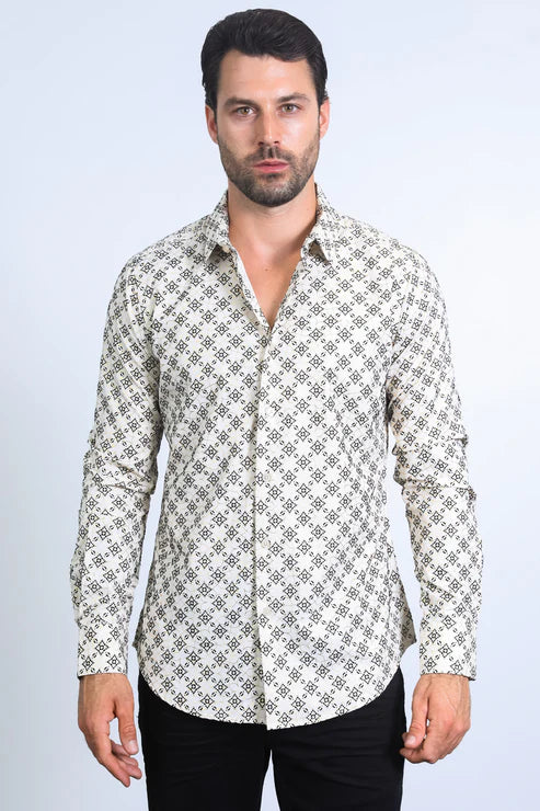 Long Sleeve Modern Fit Stretch Print Dress Shirt