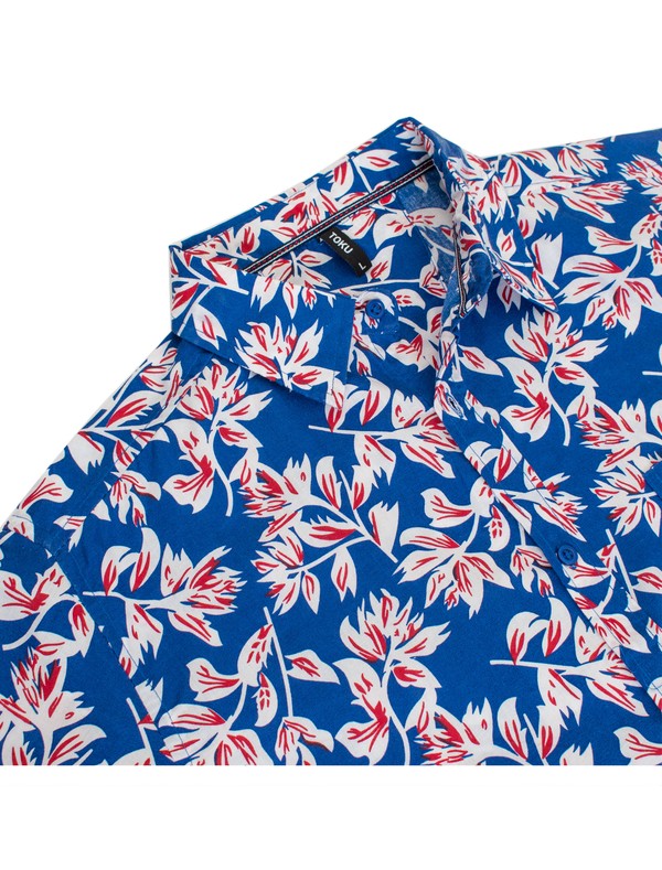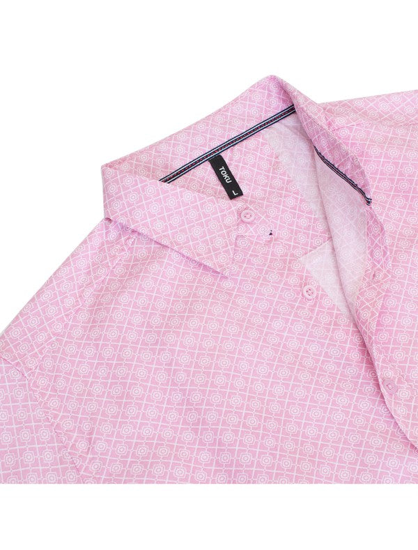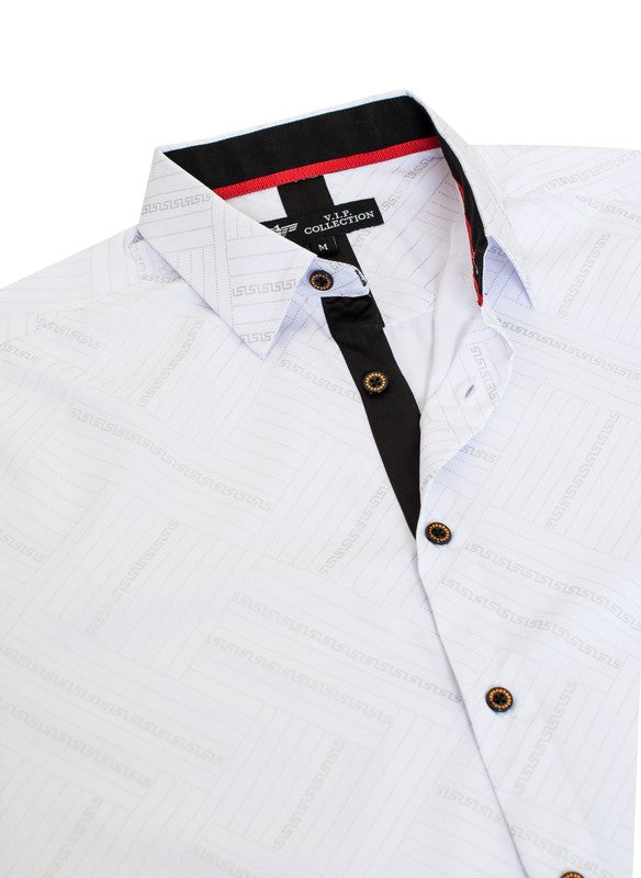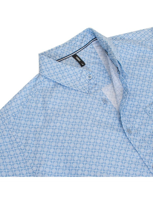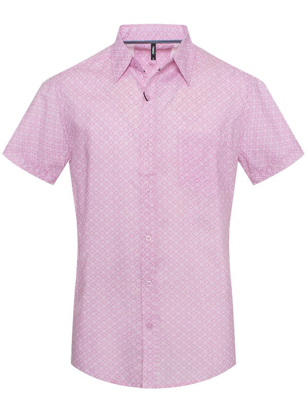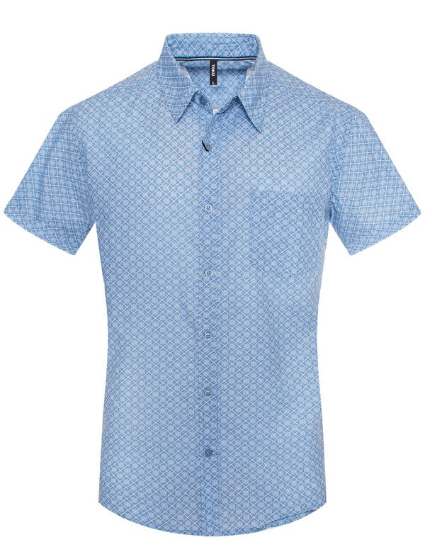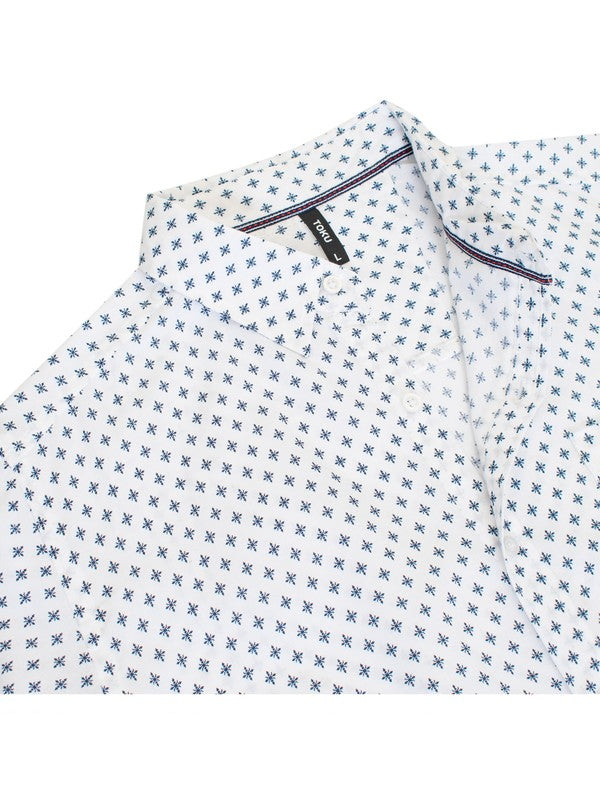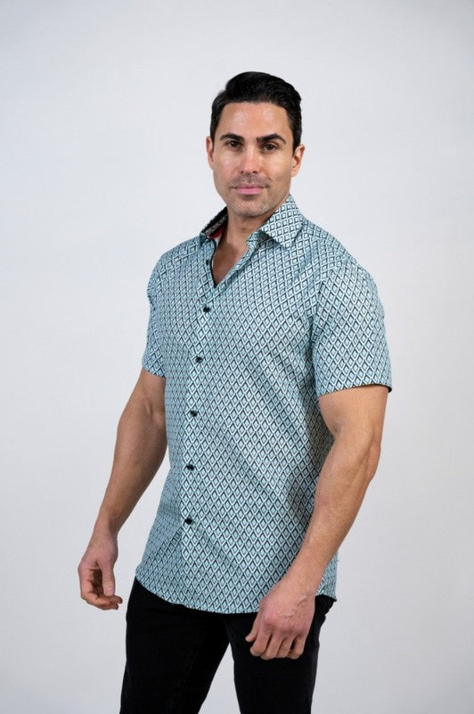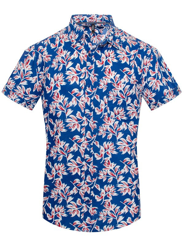 Short Sleeve Print Button Down Shirt. 80% Cotton and 20% Poly